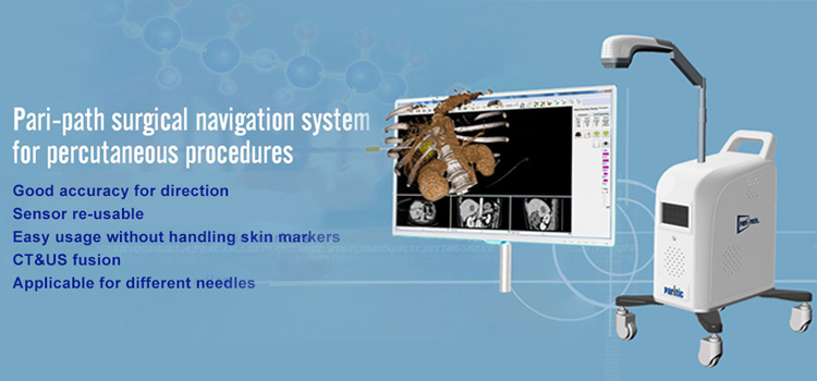 屏幕中呈现出在手术过程中医生操作的手术针的实时三维运动轨迹,及动态呈现针所在 CT 平面图像。点击了解更多...